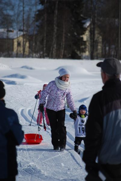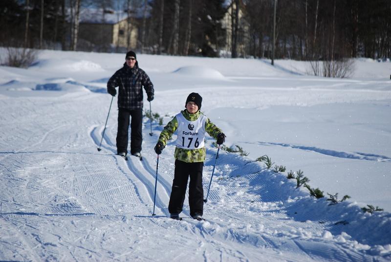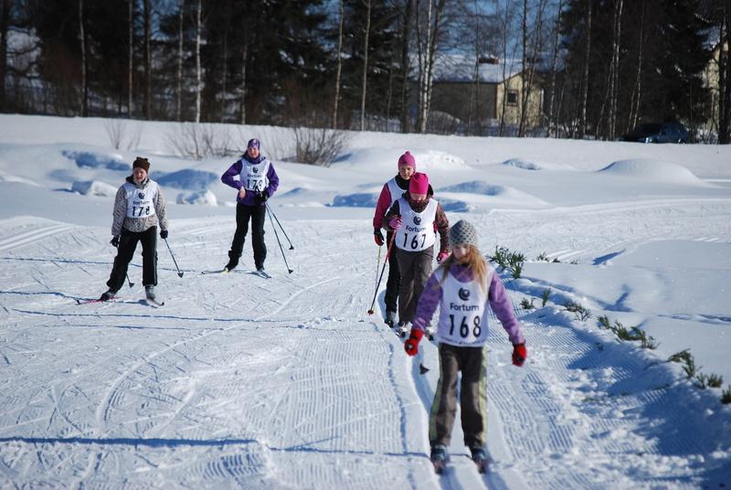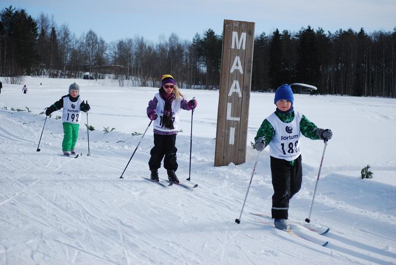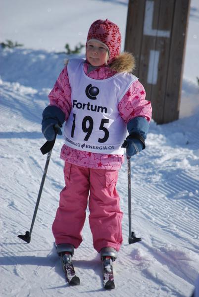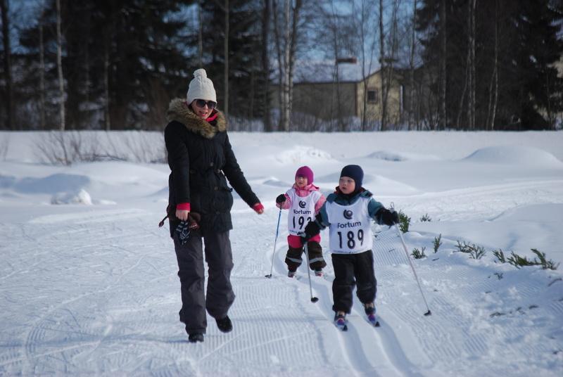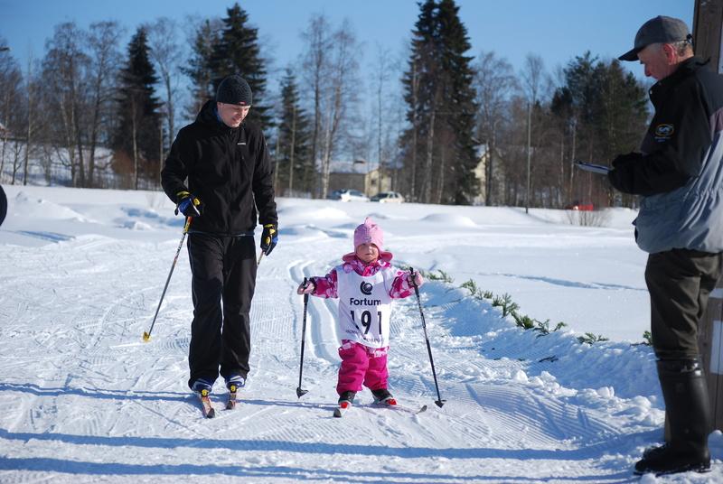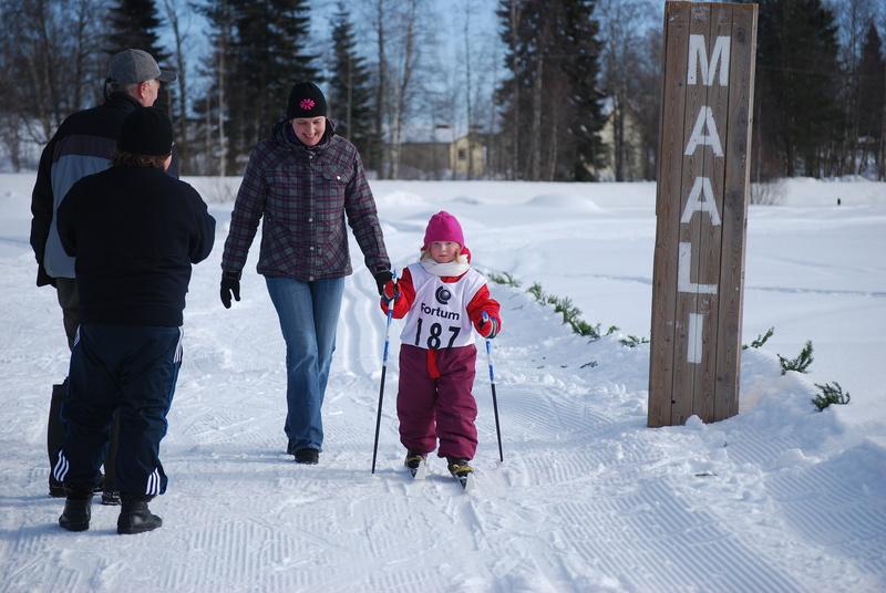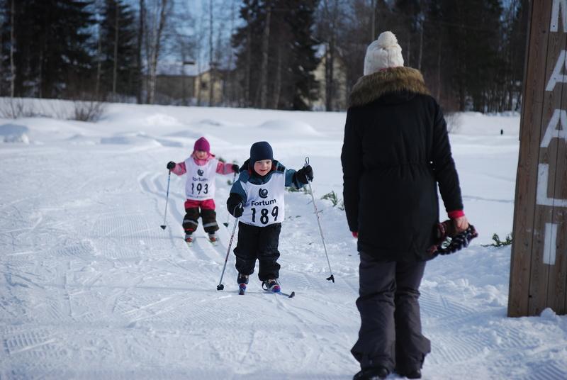 Hikihiihdossa aurinkoisesta säästä nauttivat niin aivan pienet kuin varttuneemmatkin hiihtäjät. Kuvat Pirjo Holappa