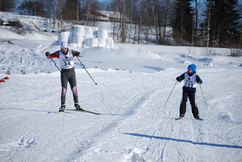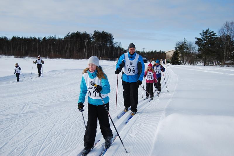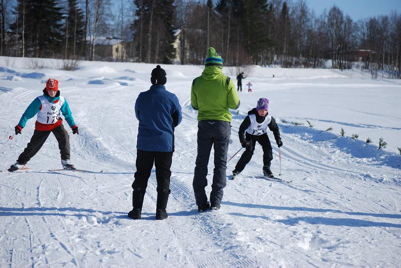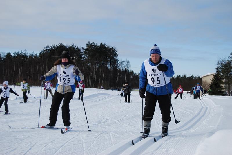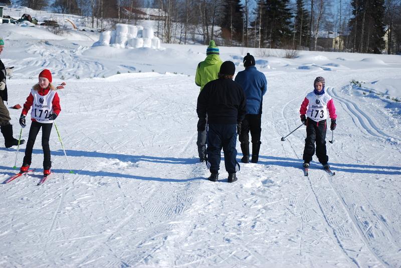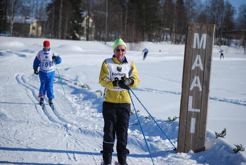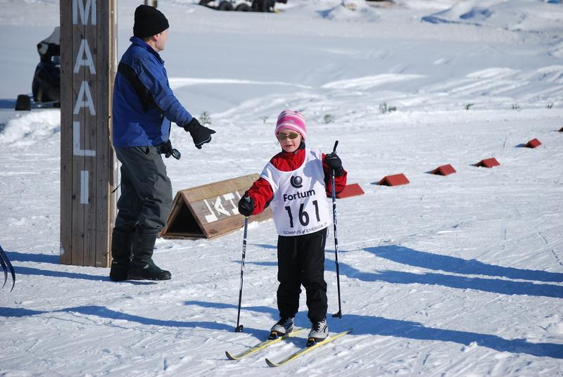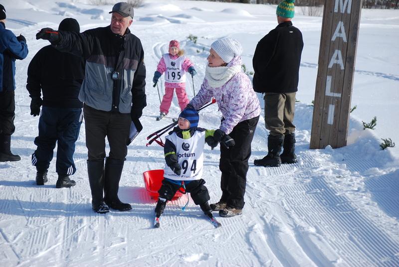Hikihiihdossa aurinkoisesta säästä nauttivat niin aivan pienet kuin varttuneemmatkin hiihtäjät. Kuvat Pirjo Holappa