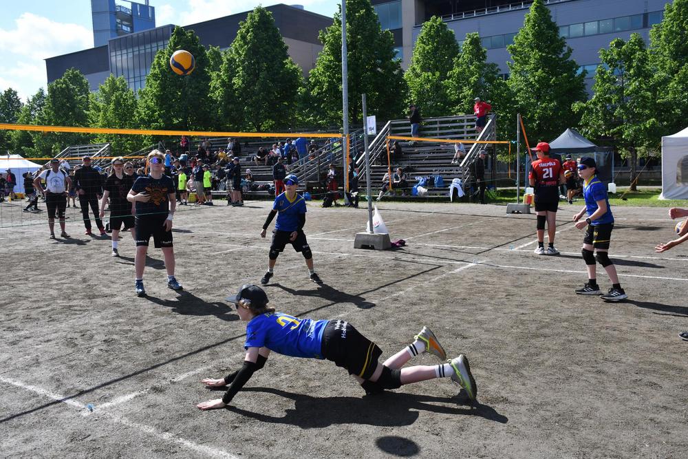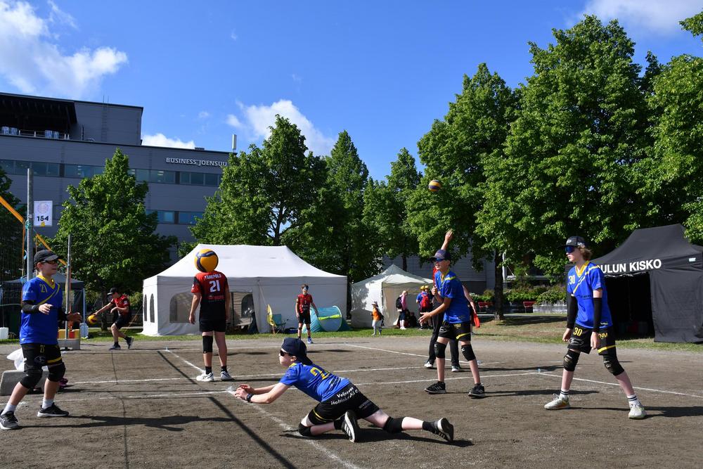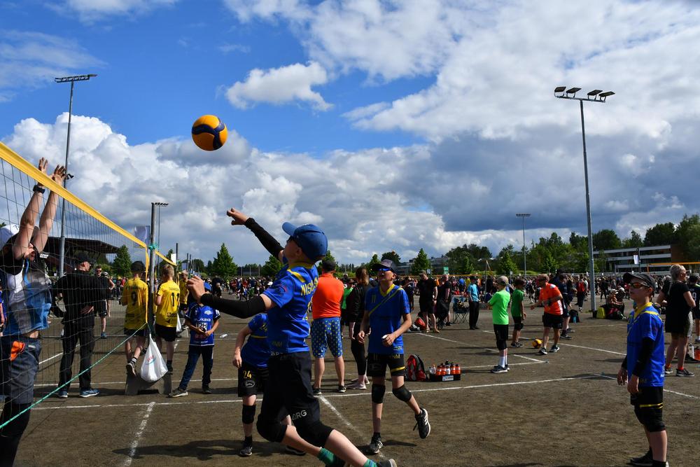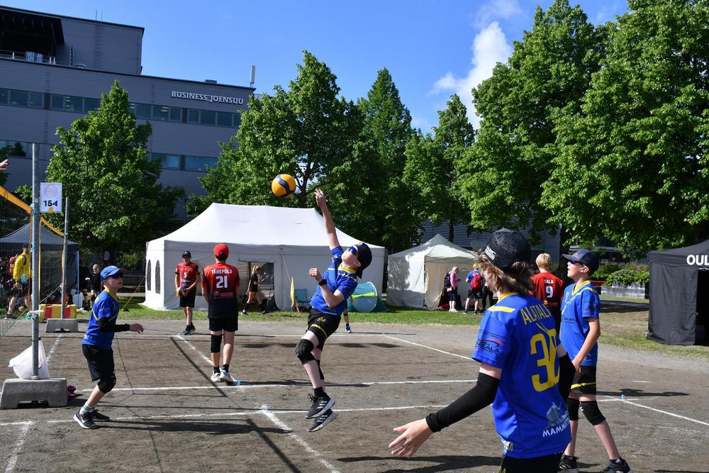 Ensimmäinen turnauspäivä oli torstai, joka oli myös viikon lämpimin päivä. Lentopalloilijat oli jaettu Mehtimäen urheilupuiston alueella ja Joensuun raviradan kupeessa oleville viidelle eri pelikenttäalueelle, joissa kaikissa oli kahdestakymmenestä lähemmäs sataan pelikenttää. Nuijamiehet pelasivat Louhelan kivituhkakentällä, Joensuu Areenalla sekä Joensuun pesäpallostadionilla. Linja-autolta joukkueet jakaantuivat valmentajineen ja huoltajineen omille pelipaikoilleen. Jokaisella joukkueella oli viikon aikana myös useita tuomaroitavia pelejä hoidettavana, joten ohjelmaa kisapäivien aikana riitti. Kisapäivien aikana lounaat ja päivälliset tarjoiltiin Joensuu Areenalla, jossa joukkueet kävivät syömässä omien aikataulujensa mukaan sopivissa väleissä. Mahdollisuuksien mukaan Nuijamiesten pelaajat kävivät myös kannustamassa muita Nuijamiesten joukkueita.