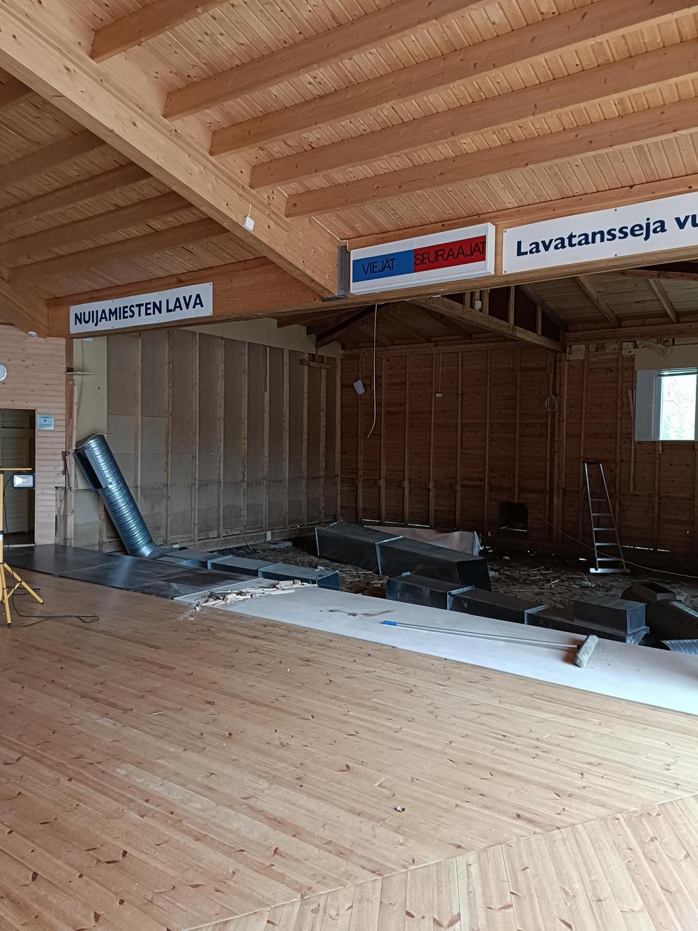 Jo aiemmin kesän aikana pääsimme nauttimaan hankkeen ensimmäisessä vaiheessa toteutetusta laajemmasta parkkialueesta. Heti tanssikauden päätyttyä aloitettiin wc-tilojen ja esiintymislavan purkutyöt. Hommat on lähteneet käyntiin rivakasti - kiitos tähän mennessä mukana olleille 💪