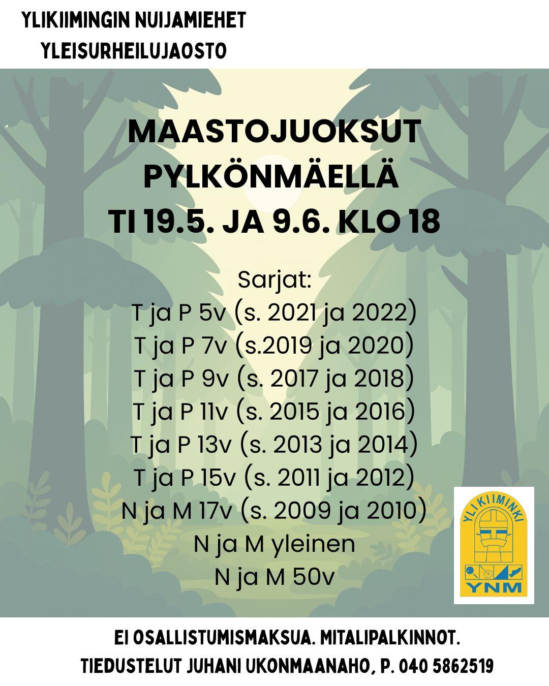 Maastojuoksut Pylkönaholla 19.5. ja 9.6. klo 18